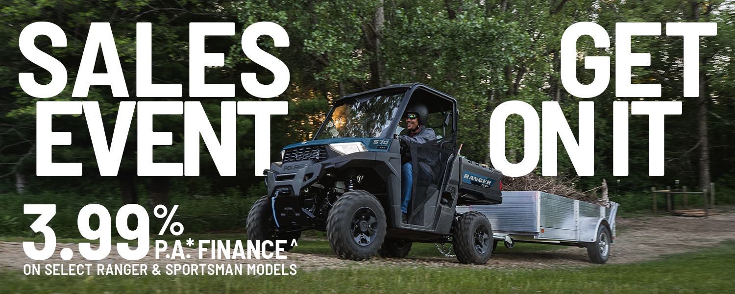 The Polaris Sales Event is on now, featuring super low‑rate finance on selected Polaris models.